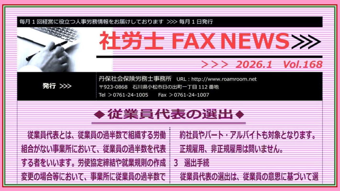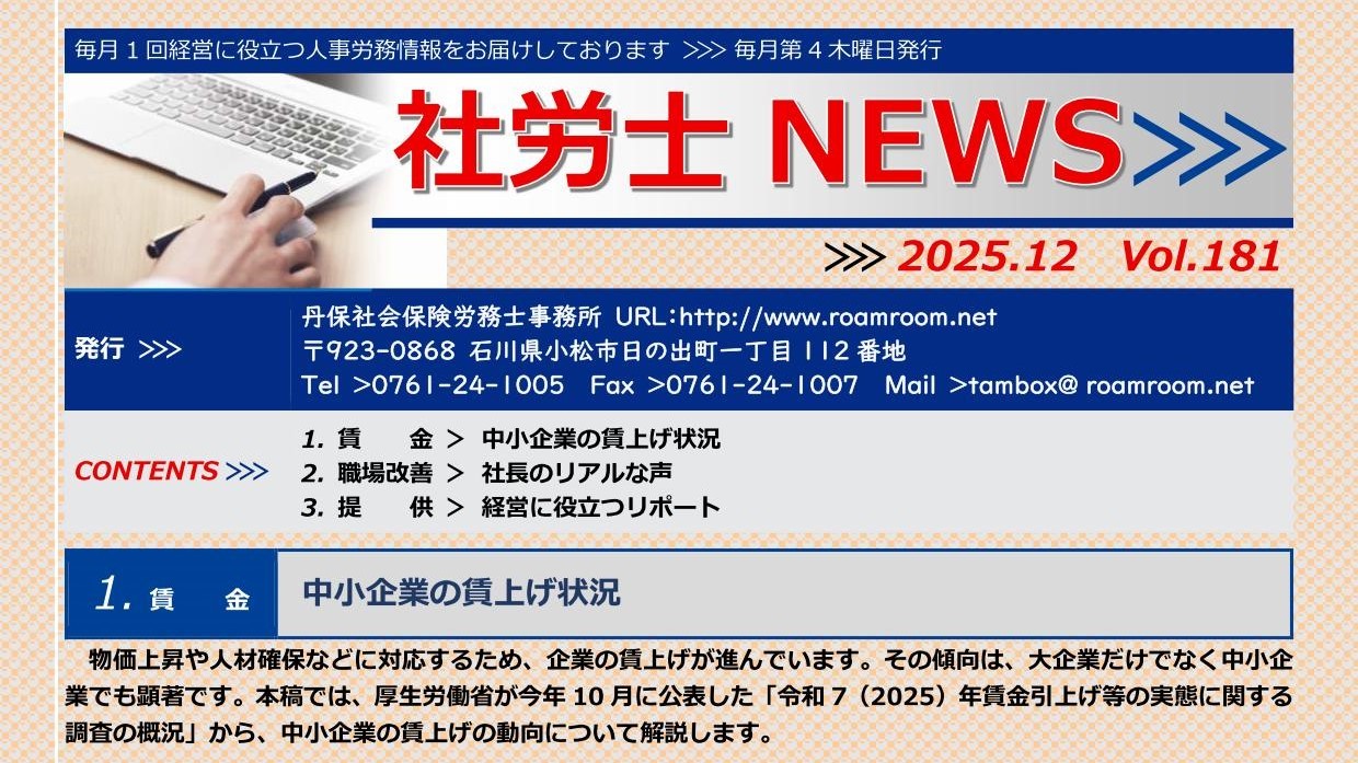 石川中央労務通信RoamRoomNews(丹保社会保険労務士事務所月報)第294号は2025年12月1日に発行です。